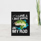 Fishing saying that says I love a large mouth on my rod. This design looks really effective on these Greeting Card