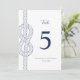 Add a nautical touch to your wedding reception table décor with these large size (5'x7") stylish modern table number cards, featuring a nautical rope knot on the left side, in classic white and navy blue colors. Find matching products in the collection, and feel free to contact me through Zazzle Chat for additional products, other colorways, or design tweaks.