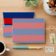 A modern red and blue horizontal stripes print background for a fine custom gift.