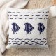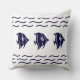 This pillow designed by Sandy Closs part of the ocean nautical themed decor navy fish on white PILLOW on one side and navy on back. nautical designs perfect for coastal living, lake decor ,river decor and more...