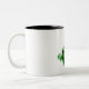 White mug with black inside featuring Large Neon Green Comedy/Tragedy Masks design.