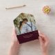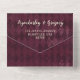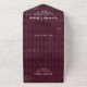 Introducing our classic all-in-one invitation which allows you to feature a treasured picture of your choice as the background for the majority of the inside of the invitation. This invitation is a simple grunge burgundy diamond patterned textured background with ivory text and is perfect for couples seeking a sleek, minimalist and classic aesthetic for their special day. The highlight of this invitation is the convenient QR code, allowing guests to RSVP effortlessly using their smartphones. For traditionalists, we've included a traditional paper RSVP option as well. With the all-in-one design, guests can easily tear away the RSVP section and send it back. Additionally, we've provided email information for RSVPs, ensuring a seamless and convenient RSVP process. Fully customizable, this invitation also offers the option to add a cherished photo, adding a personal touch to your wedding announcement. This template was created using a photo with a landscape orientation, and the customer, in all likelihood, will have an easier time with successful picture placement using a photo with a landscape orientation.