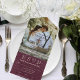 Introducing our classic all-in-one invitation which allows you to feature a treasured picture of your choice as the background for the majority of the inside of the invitation. This invitation is a simple grunge burgundy diamond patterned textured background with ivory text and is perfect for couples seeking a sleek, minimalist and classic aesthetic for their special day. Included is a traditional paper RSVP, with the all-in-one design, guests can easily tear away the RSVP section and send it back. Additionally, we've provided space for a website and email information for RSVPs, ensuring a seamless and convenient RSVP process. This template was created using a photo with a landscape orientation, and the customer, in all likelihood, will have an easier time with successful picture placement using a photo with a landscape orientation.