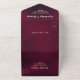 Introducing our classic all-in-one invitation which allows you to feature a treasured picture of your choice as the background for the majority of the inside of the invitation. This invitation is a simple burgundy textured background with ivory text and is perfect for couples seeking a sleek, minimalist and classic aesthetic for their special day. The highlight of this invitation is the convenient QR code, allowing guests to RSVP effortlessly using their smartphones. For traditionalists, we've included a traditional paper RSVP option as well. With the all-in-one design, guests can easily tear away the RSVP section and send it back. Additionally, we've provided email information for RSVPs, ensuring a seamless and convenient RSVP process. Fully customizable, this invitation also offers the option to add a cherished photo, adding a personal touch to your wedding announcement. This template was created using a photo with a landscape orientation, and the customer, in all likelihood, will have an easier time with successful picture placement using a photo with a landscape orientation.