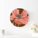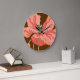 A large pink flower rests on a deep red background in this painting by Nancy Slocum. The flower is vibrant and in full bloom. A stunning gift for a special person in your life!