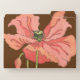 A large pink flower rests on a deep red background in this painting by Nancy Slocum. The flower is vibrant and in full bloom. A stunning gift for a special person in your life!
