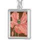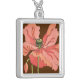 Large Pink Flower with Deep Red Background Silver Plated Necklace