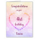 Large pretty pink pastel Happy 41st Birthday design Greetings card.
