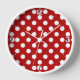 Large, retro polka dots / coin dots - white dots on a deep red background