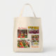 Large reusable 17 x 17.25 x 5 cotton canvas grocery / shopping bag with photos of produce and grocery items.
