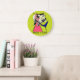 Add a splash of love and color to your home with this eye-catching round wall clock. The vibrant yellow-dominated design features an adorable cartoon couple, customized with two names of your choice.