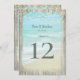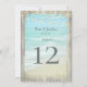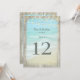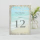 Complete your coastal rustic beach wedding table décor with these large size table number cards. Aqua blue ocean waves crash on the beach with white sea foam spray, framed with weathered wood and string lights on top.