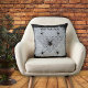 This throw pillow is white with a rustic white painted patch with a large triangle shaped black spider web with black widow spiders with red hourglass markings. Customise your text with the template on the front and back.