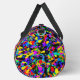 I actually had been searching other sites for a duffle gym bag and I couldn't find any. This one is just what I was looking for with all the features. The inside zip pocket, the outside mesh pocket and LOTS of room inside. Love the printing. Really like how the floral print turned out.