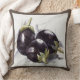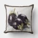 a beautiful painting of eggplants makes this an elegant and dramatic pillow for your sofa. purple, brown, green on aff-white.