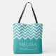 Large turquoise chevron zig zag stripe bridesmaids tote bag