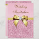 Large Wedding Faux Pink Sequins Gold Bow Invitation
