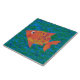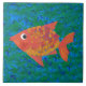 A colourful Large Ceramic Tile, with a cheeky Orange and Yellow Fish on a Deep Blue and Green background, from a whimsical hand-painted paper collage by Judy Adamson. Part of the Posh and Painterly 'Fish in the Sea' collection, this pattern can be adjusted to fit any Tile so you can also change the scale if you wish. You can customize this Tile further by removing the Blue/Green background layer and choosing a plain colour. Alternatively, you can remove the Fish Motif. (Add a wooden frame to use as a Trivet.)
