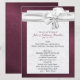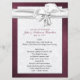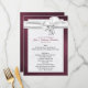 Large wedding table menu done in a rich maroon damask, with a white damask overlay text area. Lovely graphics of a white satin looking ribbon and bow decorates the top of the menu. Personalize all the text to suit your wedding reception menu. Matching wedding products available.