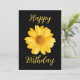 Large Yellow Flower on a black background, matching solid yellow on the back Happy Birthday Card