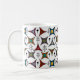 This mug has a mid-century modern design of four-point and three-point stars in retro colors.