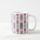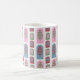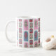 This mug has an art deco design of larger repeating dome shapes with tree shapes inside them. If you like the design but prefer different colors, message me.