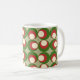 This mug has a Christmas mid-century modern design of three circles layered atop each other; one green, one red, and one white. Each circle is then turned 90 degrees to make a square of circles. Like the design but want other colors? Message me.