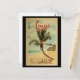 A uniquely retro mid-century modern Largo Florida art print in vintage travel poster style. It features a curved palm tree on sandy beach with ocean under a blue cloudy sky.