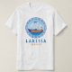 Larissa, Greece men's T-Shirt with a design of an ancient Greek ship and Greek style lettering. This design features an Ancient Greece ship and the Greek key lines pattern in a circle with the sea and sky. This Greek style font design makes this tee an ideal gift or souvenir or to wear while you are on vacation in Larissa.