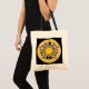 Budget Tote Bag black and natural with black white and gold concentric-circles design on black background with tiger in the middle surrounded by "CENTER OF THE UNIVERSE" which is surrounded by "COLUMBIA, MISSOURI" and that is surrounded by five stars. This design is a shout-out to Missouri University`s ascending athletic program.