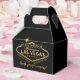 Personalized welcome to fabulous Las Vegas light sign in faux gold foil on a black gable box with custom wording on the back for creating a hangover helper welcome kit for guests at your destination wedding. The boxes are nice and small, perfect for holding some pain reliever, hydration powders, B vitamins, mints or gum, and a certificate or voucher for breakfast. The text can be changed entirely if you have a different use in mind, and several variations are available in the Paper Grape Destinations Zazzle designer store as well.