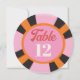 Colorful Mod Las Vegas Gambling Poker Chip Table Number Cards. Hand drawn in colors of orange pink red cream and black. Perfect for a Las Vegas Wedding or Party! Hand drawn illustration by McBooboos. All wording can be changed to fit your needs. You'll need to change each number for each table. To make more changes go to Personalize this template. On the bottom you’ll see “Want to customize this design even further? Click on the EDIT using Design tool. From there you can change some of the fonts & some colors, move things around or delete what you need.
