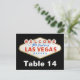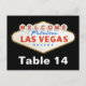 Las Vegas sign destination wedding table number postcard, featuring the famous neon sign and the text “Welcome to Fabulous Las Vegas, Nevada”, sometimes adjusted to suit wedding needs. Some elements courtesy of anasofiapaixao.