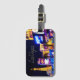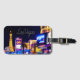 Luggage Tag featuring Las Vegas Strip lights at night with traffic in motion and colorful neon signs, plus the illuminated Eiffel Tower. Text Customization available