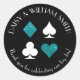 Faux teal glitter and white card suits are circled by customizable text making these round stickers perfect for all kinds of projects and occasions. Use them to label favors for wedding guests, to close envelopes and more.