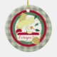 Super yummy holiday food Christmas tree ornament - Italian style, with a lasagna dish, noodles, basil leaves, tomato and smattering of veggies for fun, plus a plaid background.