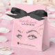 This box represents a fusion of functionality and style, it’s a fully customizable product for the savvy online beauty shop offering top-tier lash extension products. Simple black, gold glitter and pink design with a personalizable script, it serves as an elegant bag for products like lash extension aftercare kit, lash cleansers, and other lash bath accessories vital for the upkeep of eyelash extensions. Black and white illustration of woman eyes with long eyelashes is set against a blush pink watercolor brush stroke, invoking a sense of feminine charm and artistic flair.
