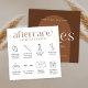Modern boho lash extensions aftercare instructions card with modern fonts, lashes care icons and terracotta color scheme. The modern font reads 'lashes' and 'aftercare' , the back of the cards includes icons and care tips for faux eyelash extensions. You can customize these bohemian lashes after care cards with your brand colors, logo and business details to make them your own.