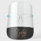 Black and gold stylish modern lashes and brows stylist face shield with a gold lashes typography script with a little heart and golden lashes and your employee or salon name. ++++++++++ Suitable for elegant beauty salon or spa.