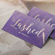 Lashes Makeup Artist Gold Script Modern Purple Business Cards.