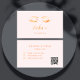 A blush pink background, decorated with a pair of golden lashes. Personalize and add Your name, title, contact info and your own QR code to your website address or social media account.