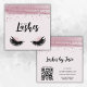 Lashes Pink Glitter Modern QR Code Square Business Card