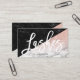 An elegant modern, stylish lashes business card with elegant script hand lettering style typography in white on a faux rose gold pink glitter ombre on modern black and white marble color block background. If you need any customization, don't hesitate in contacting me.