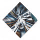 Drawings with abstract lines that mix many features, reminiscent of brown bamboo, some whitish tones mixed with gray spots cause a perception of nickel plating and look like leftovers from metal plate clippings or bows that keep the print twisted, and overlapping of some lines over matte gradient can cause a perception that resembles something like a clear glass or incolor plastic.