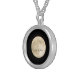 I chose gold plated so that the metal would not react with my skin oils and perspiration. But, I changed the necklace from the gold plated one to a sterling silver. My skin cells will tarnish the silver. But it will not look as bad if some portion of the gold plated necklace somehow became compromised. Zazzle did a find job turning the picture into a pendant for me. As you can see, the colors and the printing of the final product, match the preview. The picture I took is not very clear. But I am pleased with the product I received.