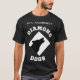 My 11 yo wore adult XL (5’7” 165#). The 8yo is small framed. She wore adult small and tied it in the back. Grandma wore adult large with long sleeve shirt underneath. Tall girl adult medium. Dark haired male adult large. Good quality dark Heather gray, Gildan brand shirt. -it was next up from basic choice and cost about $20 per shirt. Not too thick or thin. Washed and dried well, no major shrinkage. Not see-through. Can wear a bra under it fine. Screen print is just as shown and well done, front and back.