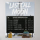 Bring the future of intergalactic travel into your home with this bold retro-inspired poster. Last Call to the Moon combines the excitement of a rocket launch with the familiar charm of an airport departure board. The design features a towering rocket, travel luggage, and the humorous announcement “Last Call to the Moon” written in a dramatic hand-drawn style.