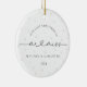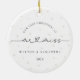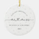 Mark your last Christmas as a Mr. and Miss with this timeless, minimalist ornament. Featuring classic and script black and white fonts and soft white pearl imagery in the background, this ornament exudes simple elegance, perfect for engaged couples. It's a beautiful reminder of your first Christmas together before becoming a married couple, adding a modern yet sentimental touch to your holiday decor. Easily customize it with your names and the year to make this keepsake uniquely yours, commemorating your engagement season in style.