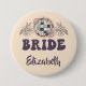 This groovy bride design features a 70s disco ball, groovy flowers, retro fonts. It's perfect for the bride to be to wear at her bachelorette party. Look for the matching "babe" design so all the members of the wedding party can match.
