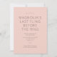 Yes, you can print on the back of your invitation for free! Most designs already have a corresponding design on the back that can be personalized using the Design Tool and going to Layers. This is a great way to communicate more information or further personalize your Last Fling Before The Ring Bridal Shower Invitation. The option is really up to you.